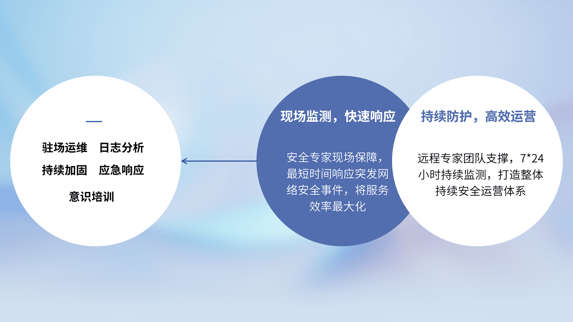 7X24小时持续监测安全事件,保持安全策略有效性,降低资产脆弱性风险,,精准拦截黑客攻击,,,,减少被黑客利用的机会,,,,第一时间遏制,,,,降低损失。。。